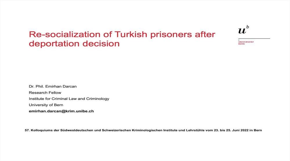 Our Senior Fellow Emirhan Darcan, Ph.D. presented his research on the Turkish prisoners in the Swiss penal system at the 57th colloquium of the Southwest German and Swiss Criminological Institutes and Chairs in Bern.