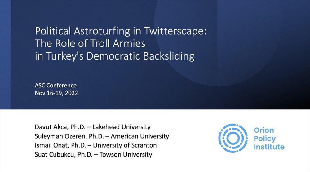Our Senior Fellow Davut Akca, Ph.D. presented our research on the role of Twitter troll armies in Turkey’s democratic backsliding at the ASC 2022 Conference. Read the full report here.