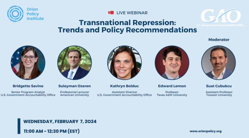 Orion Policy Institute hosted a live webinar on Wednesday, February 7, at 11 AM EST on Transnational Repression: Trends and Policy Recommendations.